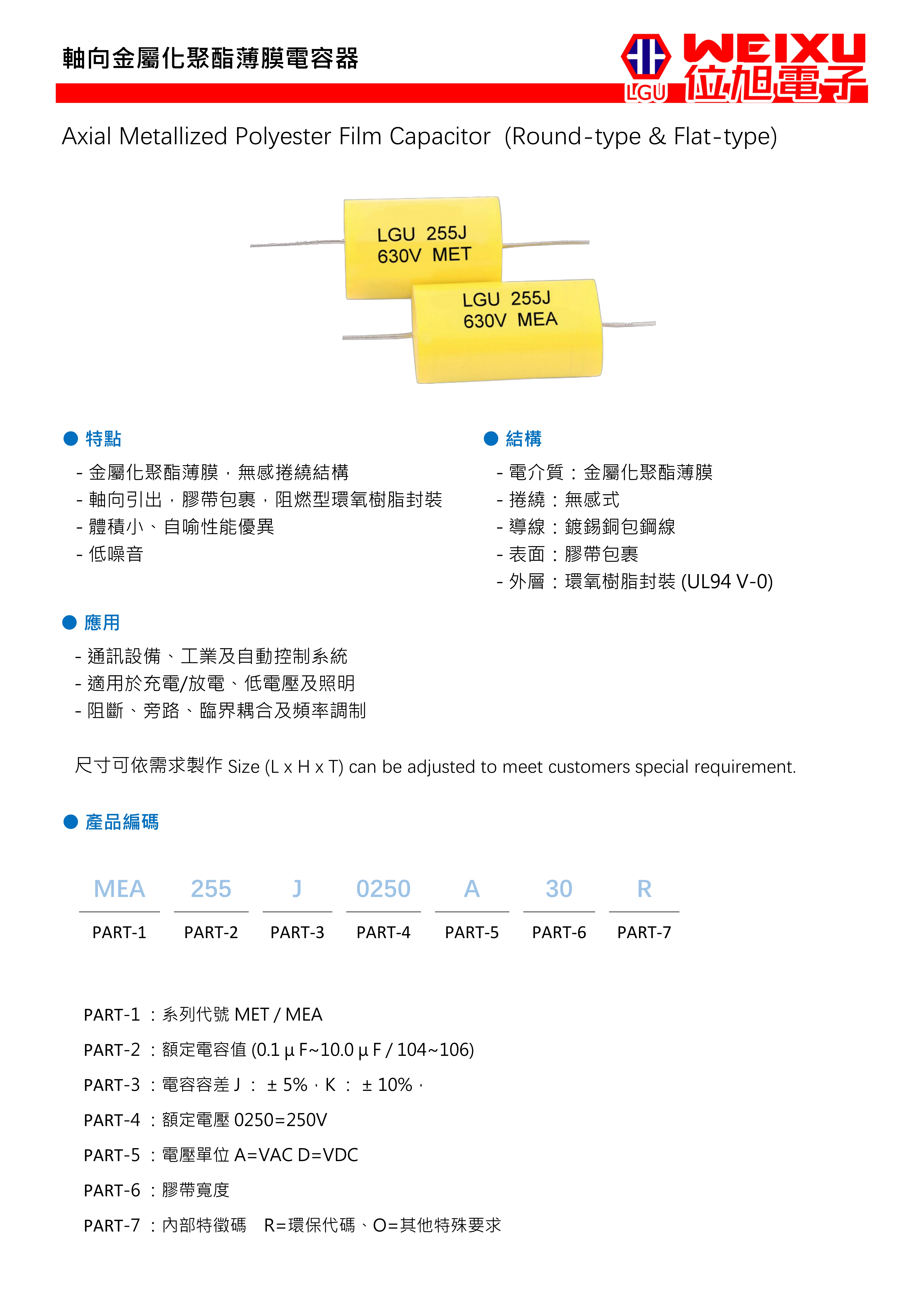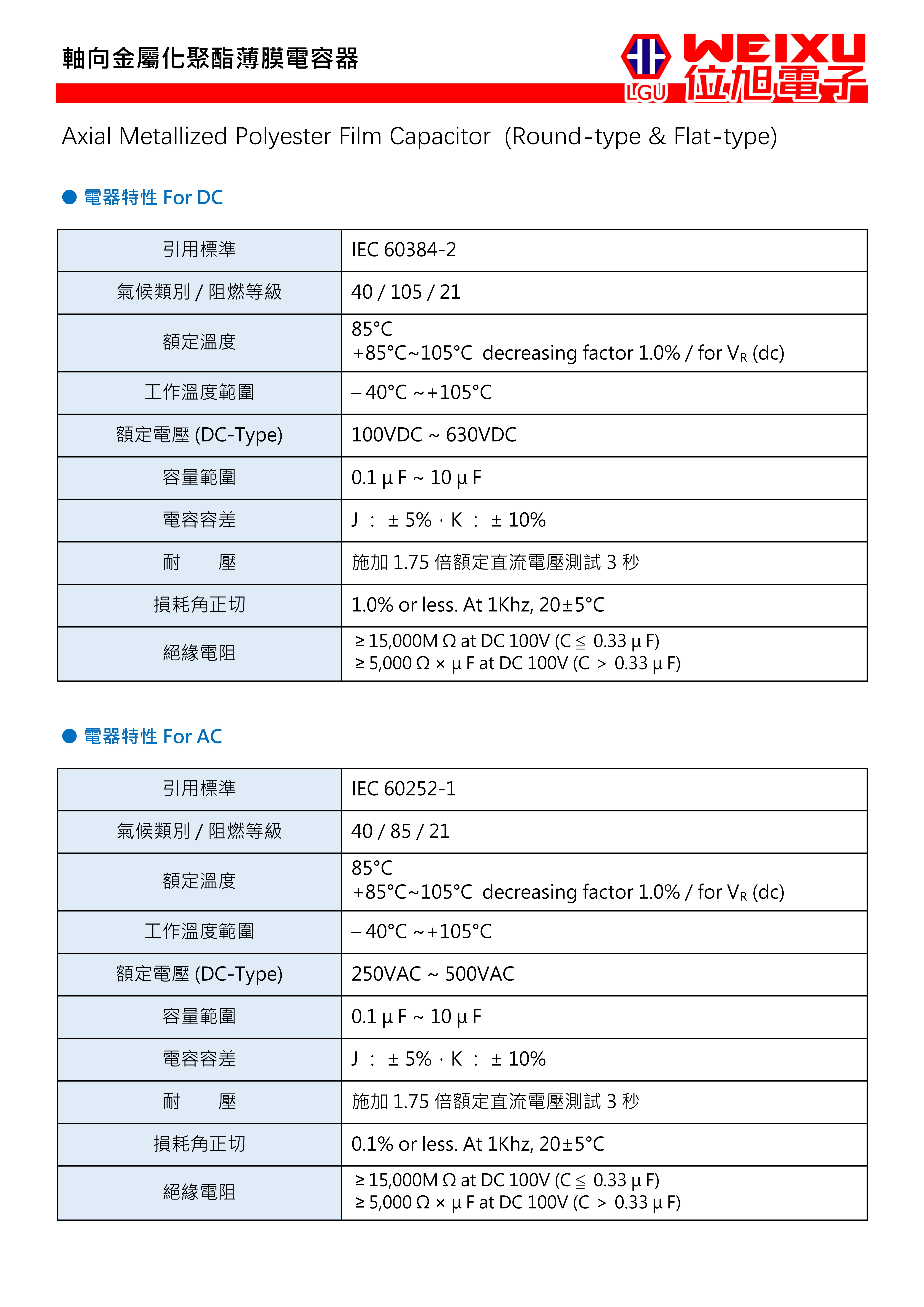 容量范圍(uF):0.1~10.0 額定電壓(Vdc):參閱目錄 工作溫度:-40℃~105℃ 額定溫度:85℃